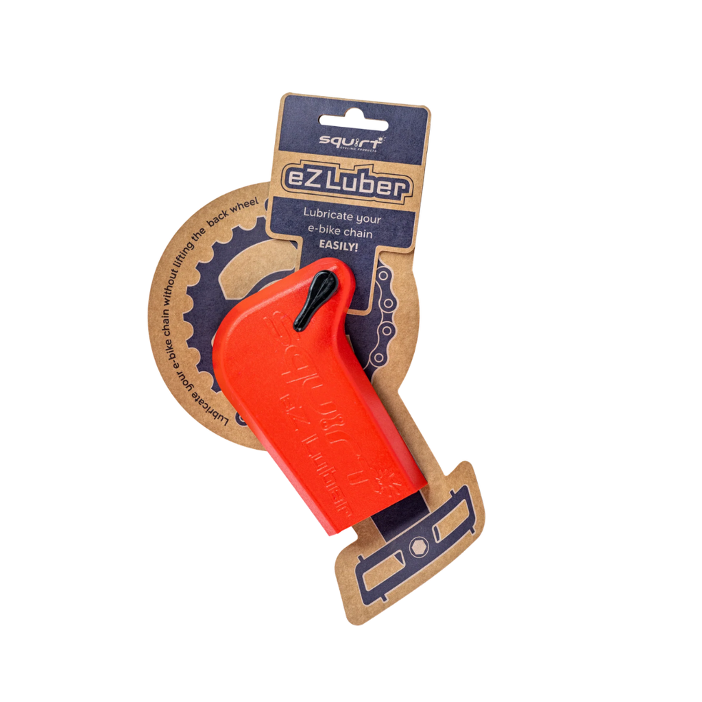The Squirt eZ Luber makes lubing your e-bike chain effortless. Just fit it over the crank arm, secure the turn hook to the chain ring assembly and your cranks can now be rotated backwards while the rear wheel is on the ground. It takes just a minute and is easy and simple